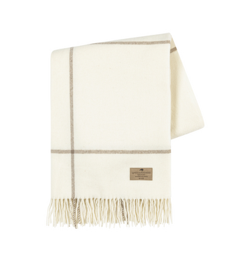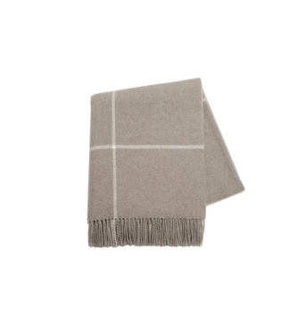 Ecru Taupe Windowpane Cashmere Lambswool Throw