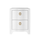 Curved front side table with two drawers in white textured linen with satin brass ring hardware.