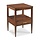 Classic 19th century styling surrounds this handy table with a square top. Elevated on four squared tapering posts that are joined by a low shelf and practical storage drawer mounted with sturdy brass pulls.